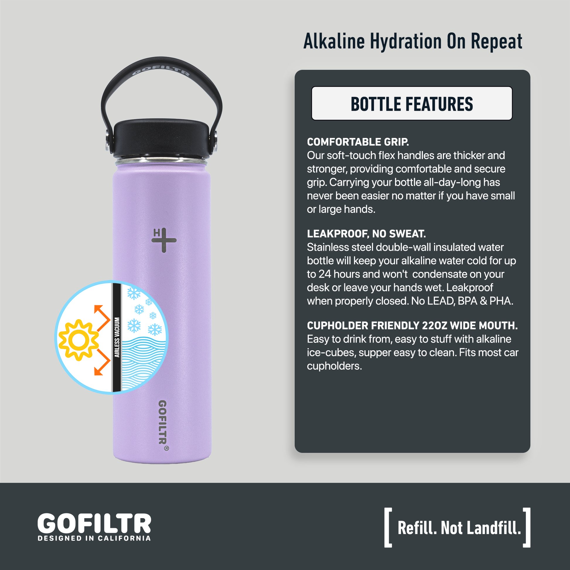 GOFILTR Alkaline Water Bottle 22 oz - Insulated Water Bottle That Creates 9.5 pH Alkaline Water