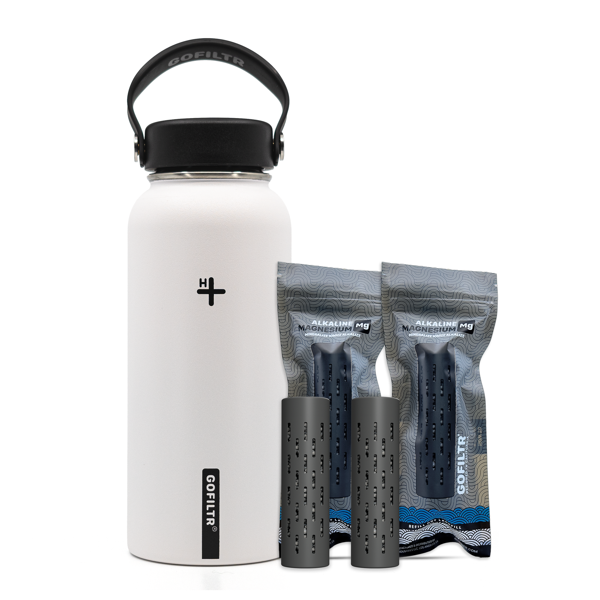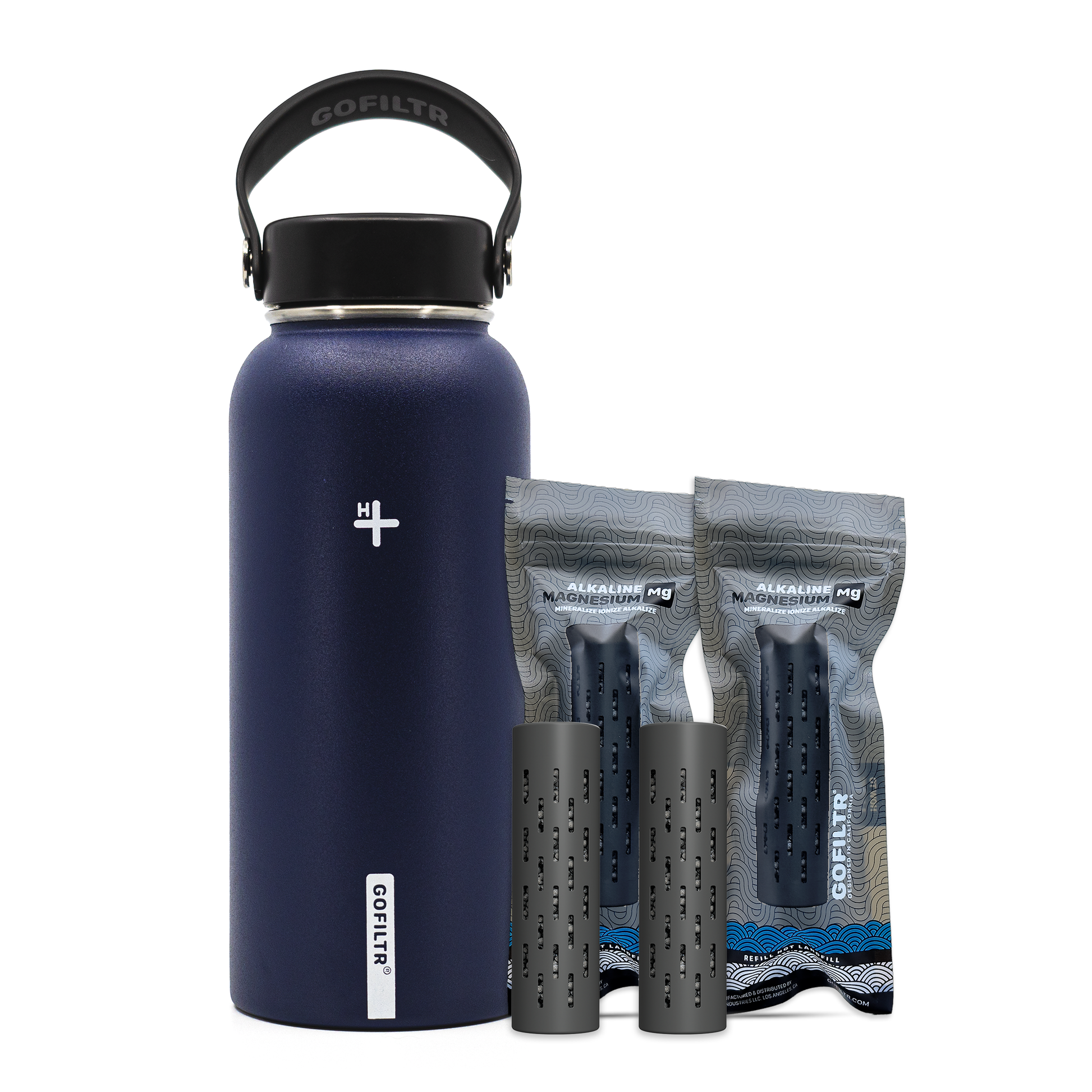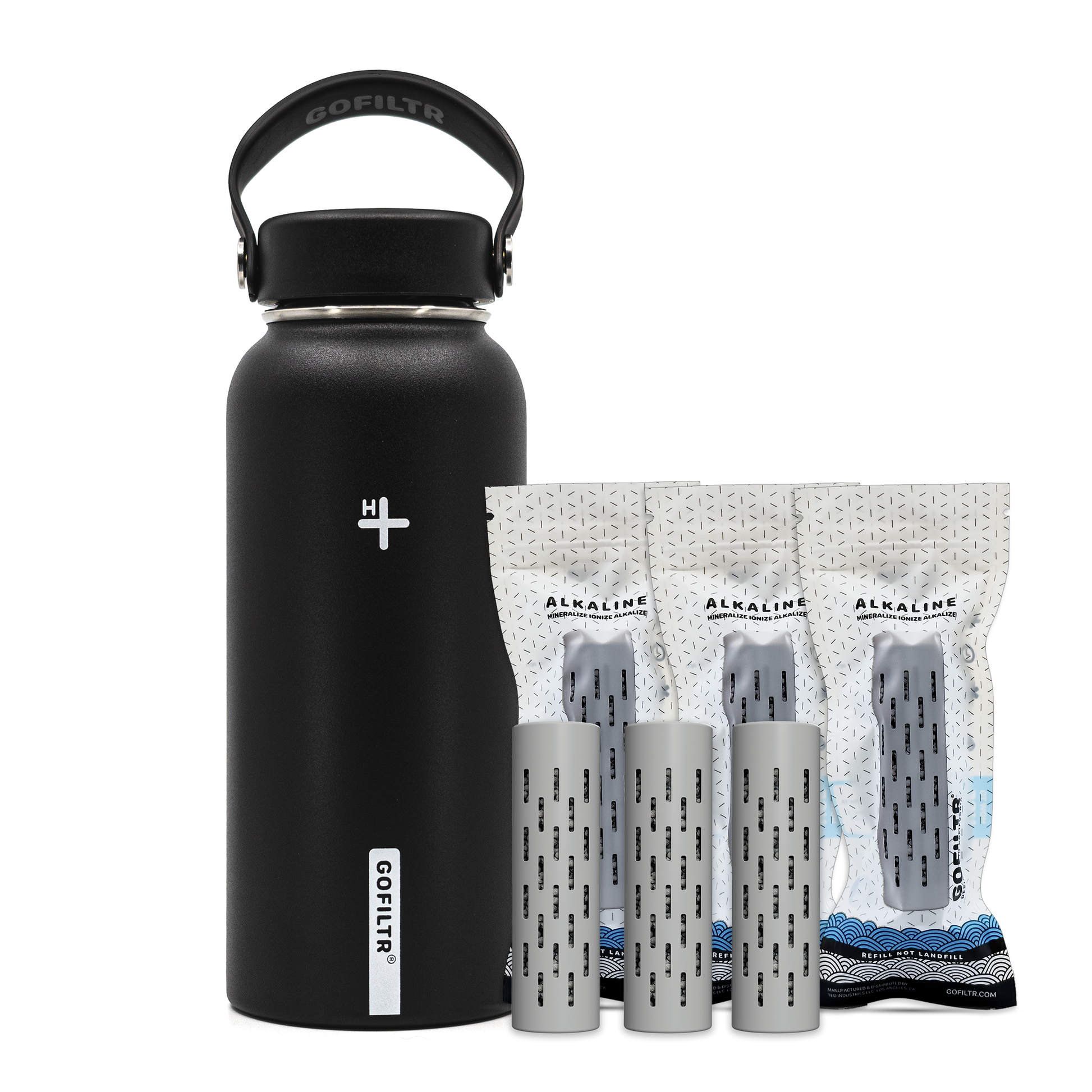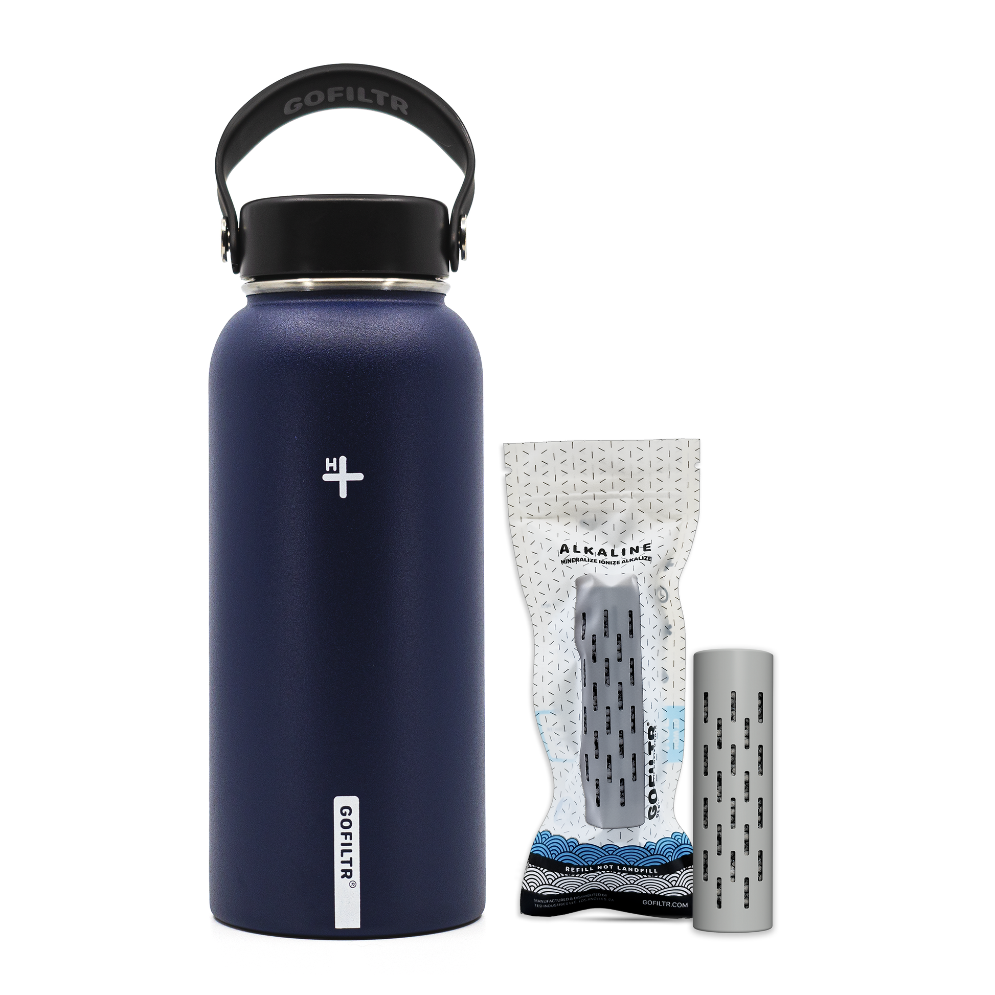 GOFILTR Alkaline Water Bottle 32 oz - Insulated Water Bottle That Creates 9.5 pH Alkaline Water